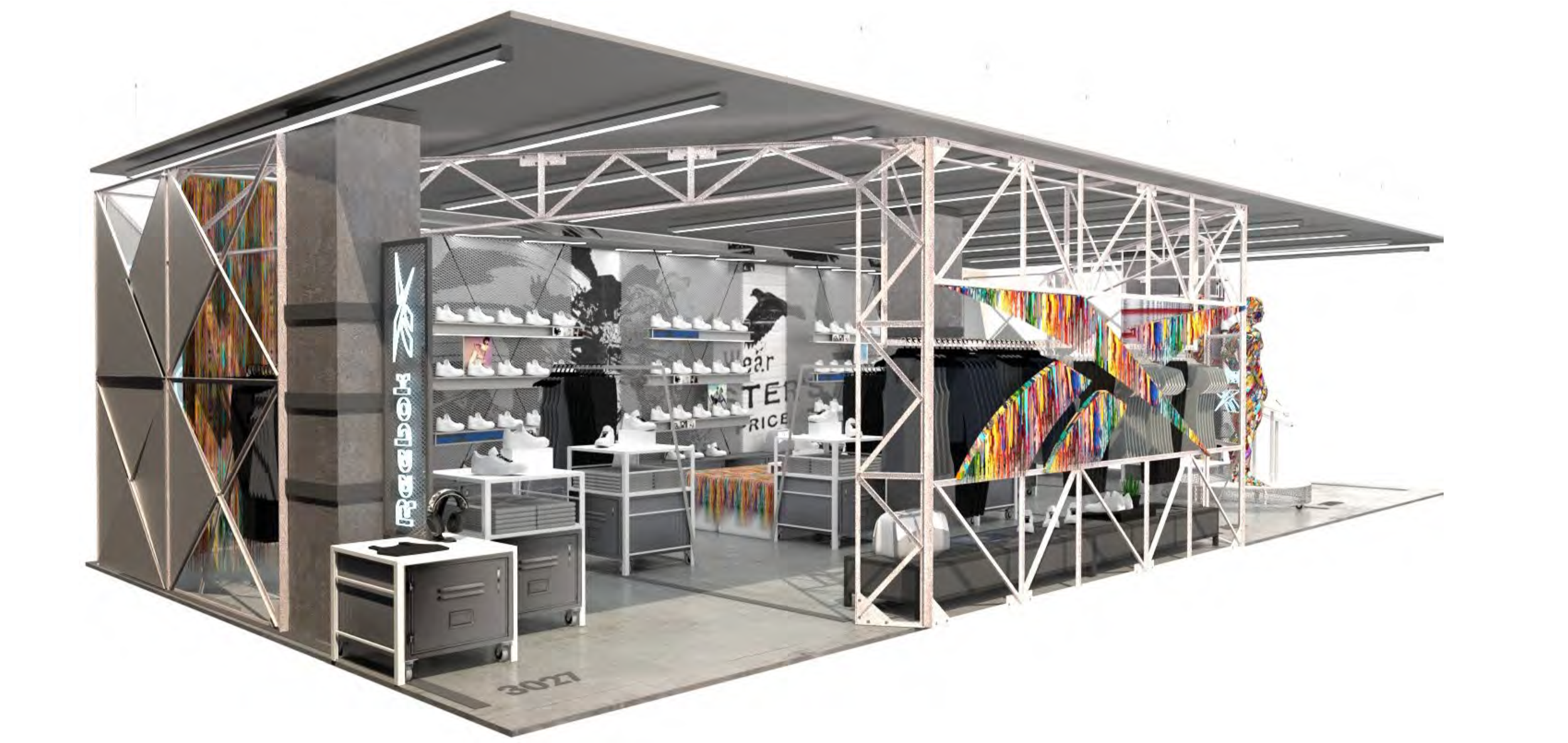 In 2019, Reebok had the opportunity to create a custom shop-in-shop in Paris’s Citadium Mall. Working with Tony Read Consulting to complete the final build, myself and Chuck Gates worked on early concepting for the space and created a custom fixture package and micro-structure inspired by the trusswork of the Eiffel Tower.